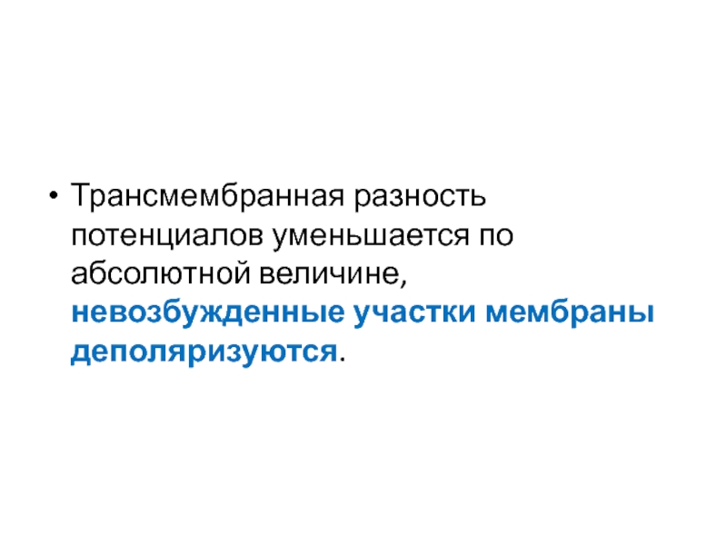 Трансмембранная разность потенциалов уменьшается по абсолютной величине, невозбужденные участки мембраны