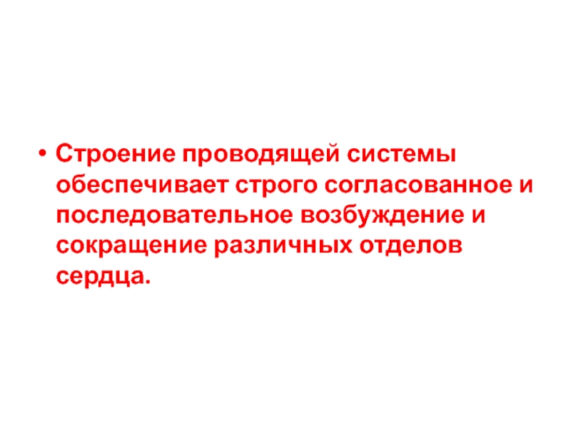 Строение проводящей системы обеспечивает строго согласованное и последовательное возбуждение и