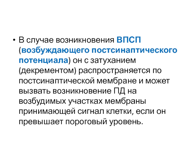 По мере удаления от точки возникновения ПД изменения трансмембранной разности