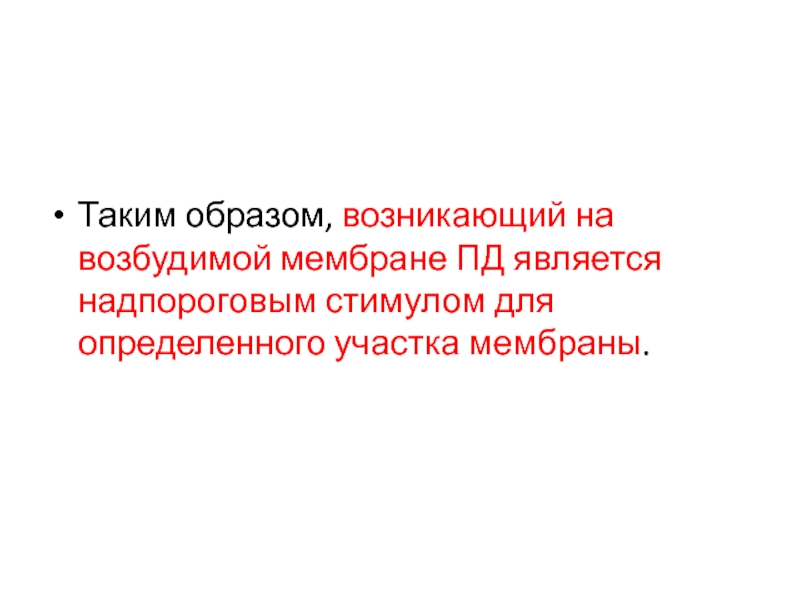 Таким образом, возникающий на возбудимой мембране ПД является надпороговым стимулом для определенного участка мембраны.
