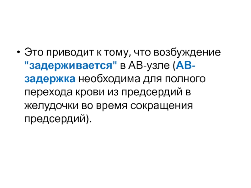 Это приводит к тому, что возбуждение "задерживается" в АВ-узле (АВ-задержка