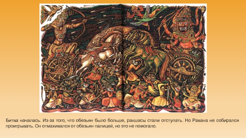 Слайд 3Битва началась. Из-за того, что обезьян было больше, ракшасы стали