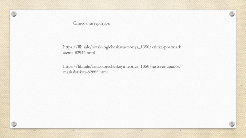 https://lib.sale/sotsiologicheskaya-teoriya_1350/rastsvet-upadok-marksistskoy-82888.htmlhttps://lib.sale/sotsiologicheskaya-teoriya_1350/kritika-postmarksizma-82946.htmlСписок литературы:
