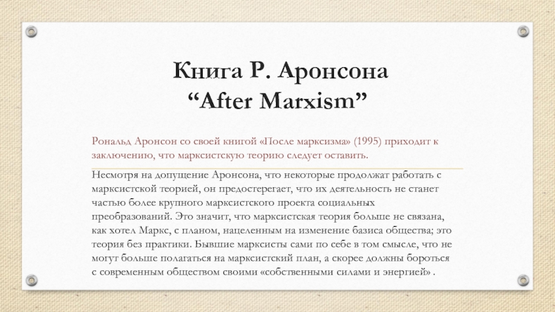 Слайд 5 Книга Р. Аронсона “After Marxism”