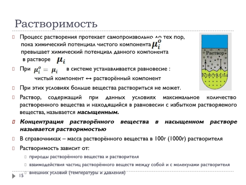 Концентрация растворённого вещества в насыщенном растворе называется растворимостью