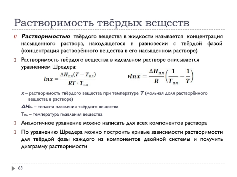 Растворимость твёрдого вещества в идеальном растворе описывается уравнением Шредера: