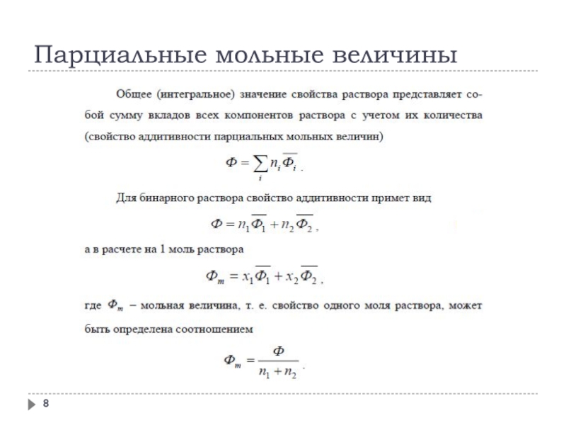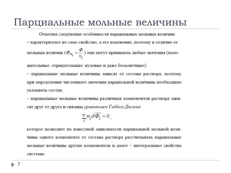 парциальных объёмов, теплоёмкостей и энтальпий компонентов.