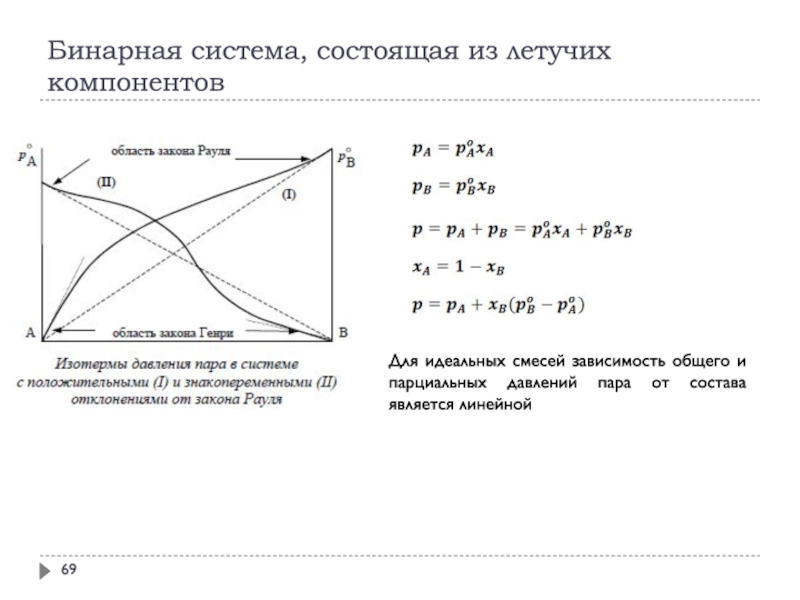 Слайд 69Бинарная система, состоящая из летучих компонентов