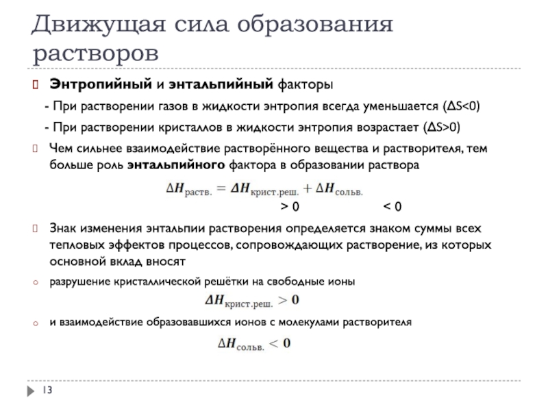 т.е. переход вещества в раствор сопровождается значительным возрастанием энтропии вследствие
