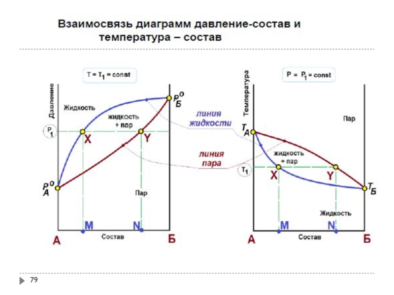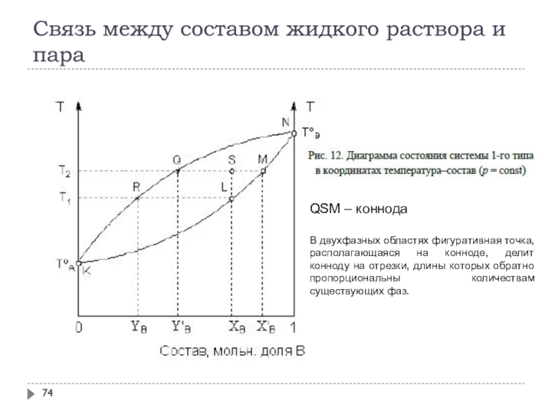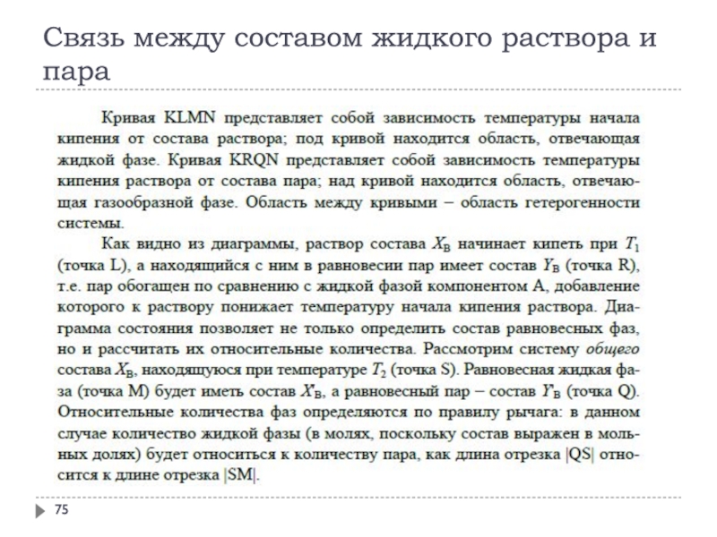Слайд 73Связь между составом жидкого раствора и пара. Законы Коновалова