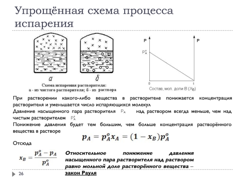 концентрация растворителя и уменьшается число испаряющихся молекул