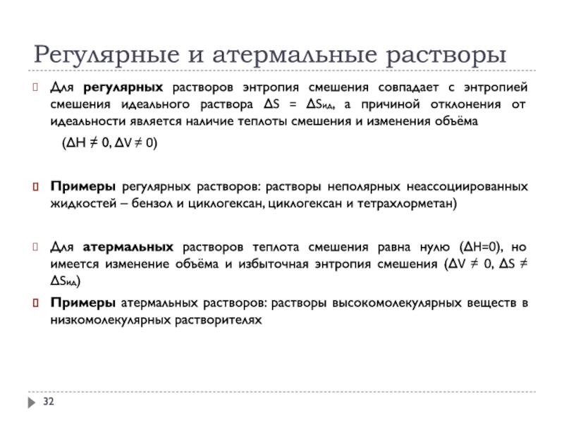 раствора равен нулю, объём не изменяется, а энтропия равна идеальной энтропии смешения