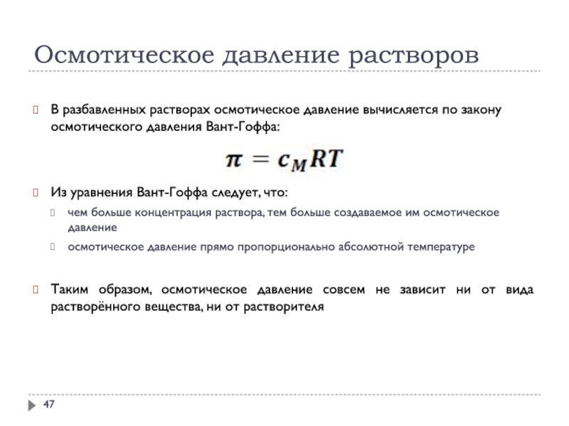Понижение давления будет тем большим, чем больше концентрация растворённого вещества в растворе