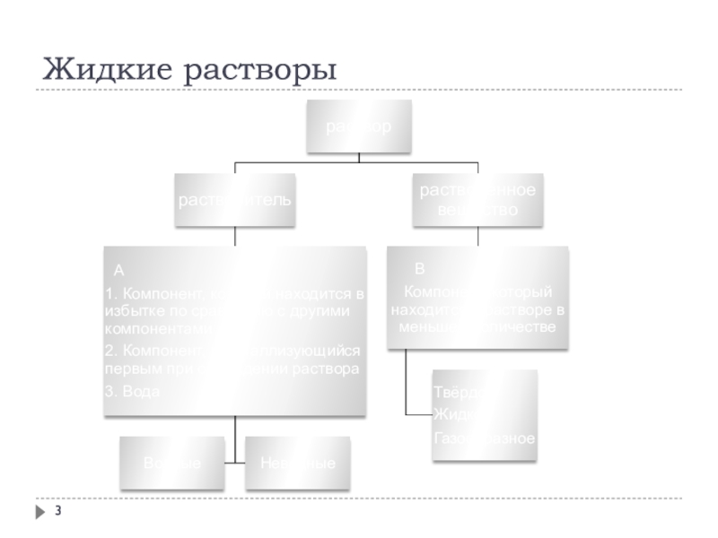 По термодинамическому признаку растворы разделяют на идеальные, бесконечно разбавленные и неидеальные.