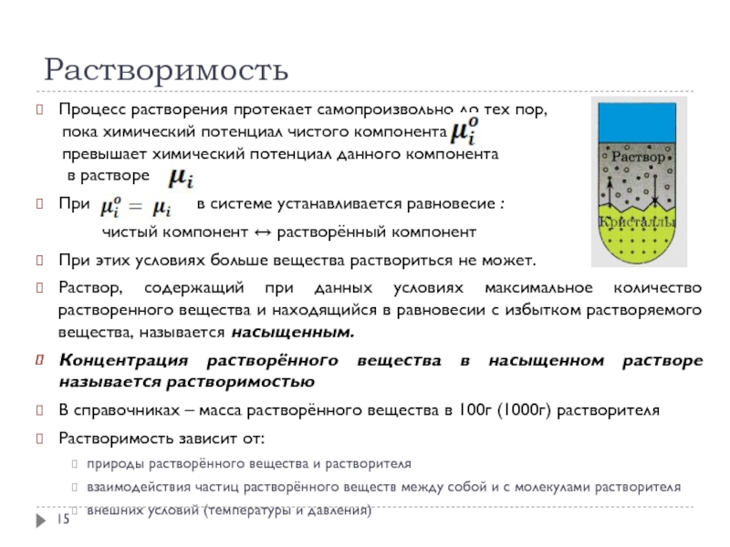 Концентрация растворённого вещества в насыщенном растворе называется растворимостью