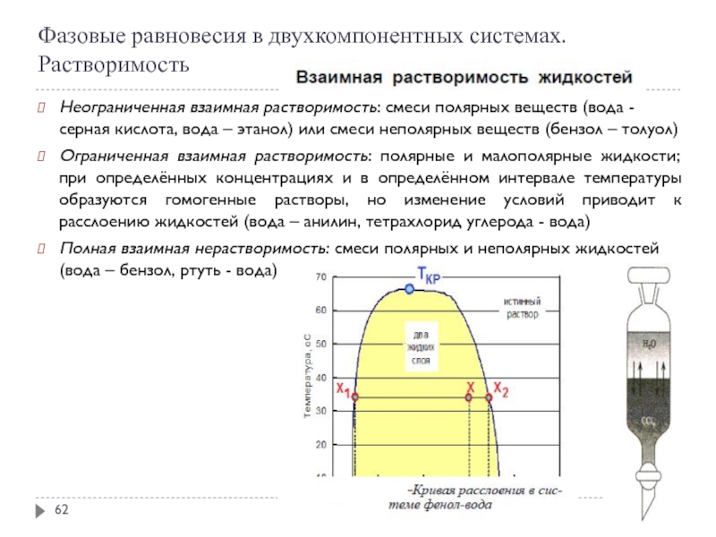 Слайд 60Фазовые равновесия в двухкомпонентных системах.