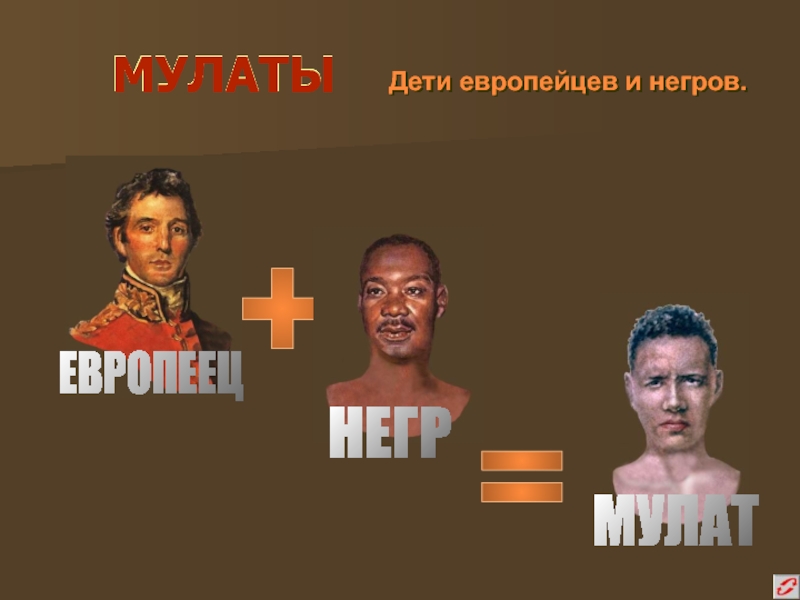МУЛАТЫДети европейцев и негров.ЕВРОПЕЕЦНЕГРМУЛАТ