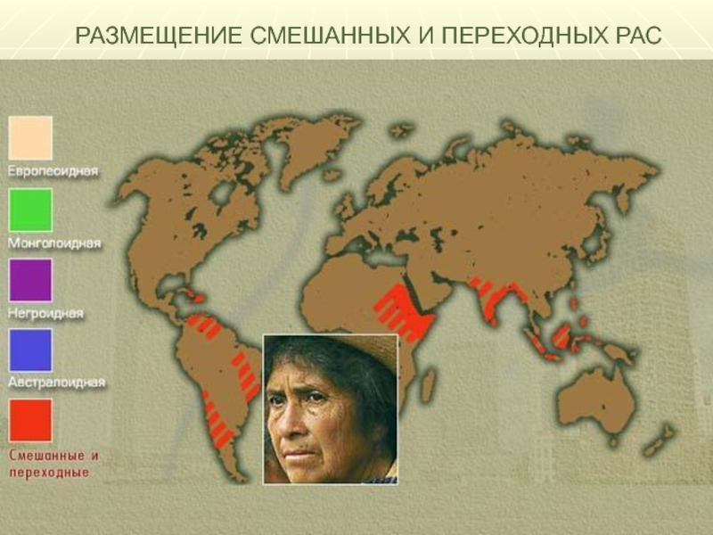 Слайд 19РАЗМЕЩЕНИЕ СМЕШАННЫХ И ПЕРЕХОДНЫХ РАС