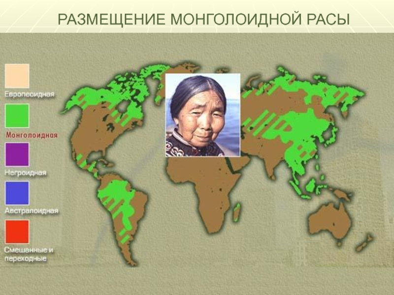Слайд 15РАЗМЕЩЕНИЕ МОНГОЛОИДНОЙ РАСЫ