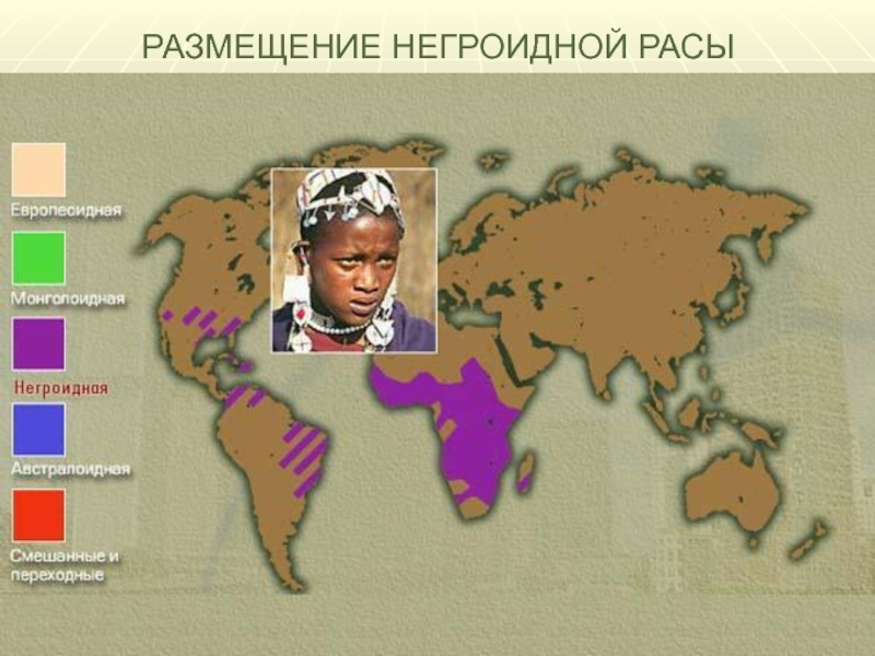 Слайд 10РАЗМЕЩЕНИЕ НЕГРОИДНОЙ РАСЫ