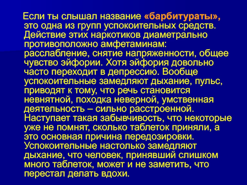 Слайд 11 Если ты слышал название «барбитураты», это одна из