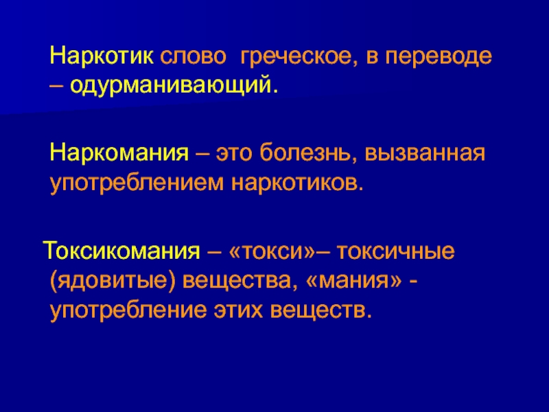 Слайд 7 Наркотик слово греческое, в переводе – одурманивающий.