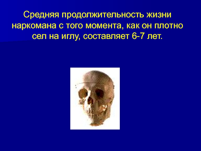 Слайд 14Средняя продолжительность жизни наркомана с того момента, как он плотно