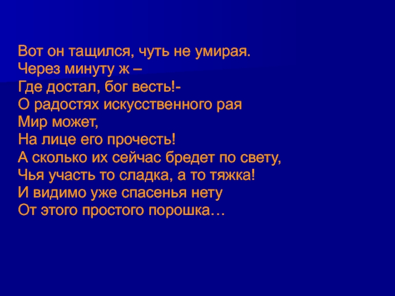Слайд 3 …Истощенное, с исколотыми венами тело. Отрешенный взгляд ничего