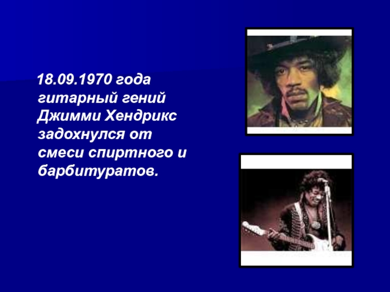 Слайд 25 18.09.1970 года гитарный гений Джимми Хендрикс задохнулся от