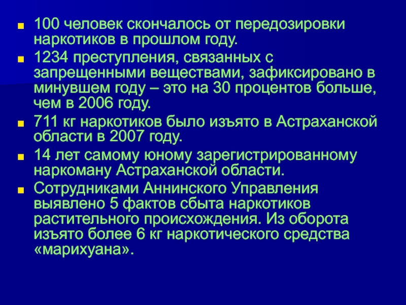 711 кг наркотиков было изъято в Астраханской области в 2007 году.