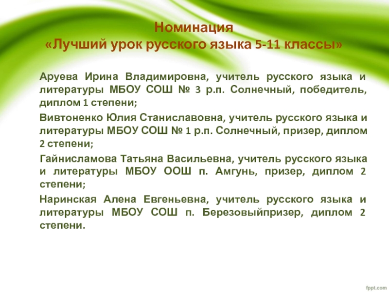 «Лучший урок русского языка 5-11 классы»