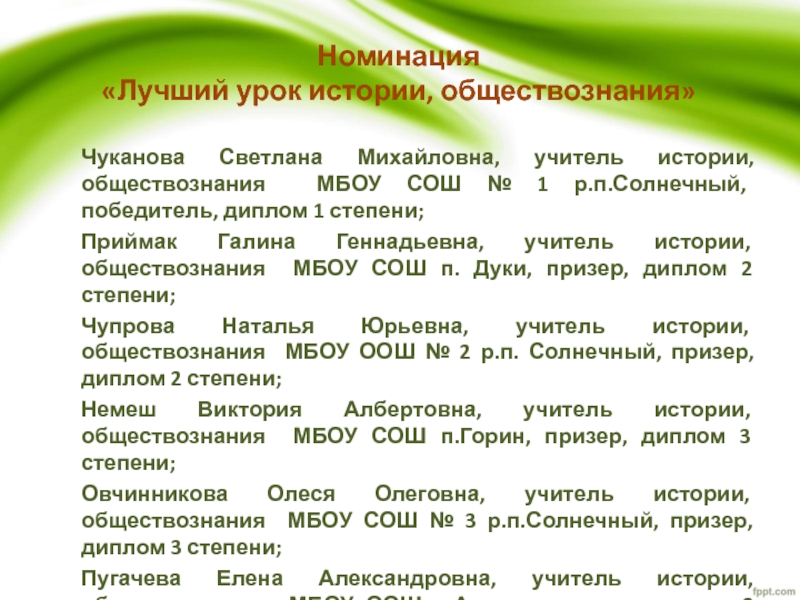 «Лучший урок истории, обществознания»