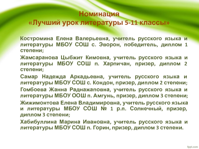 «Лучший урок литературы 5-11 классы»
