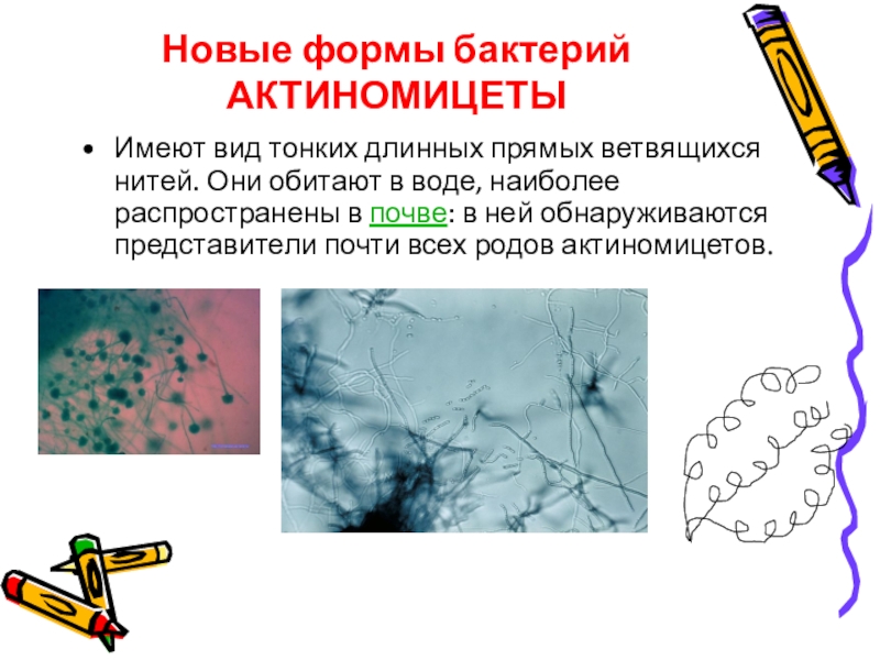 К группе палочковидных примыкают Нитчатые бактерии. С длиной клетки 15 - 50 мкм. Они представляют собой многоклеточные организмы в виде нитей, состоящих из одинаковых цилиндрических или дисковых клеток.