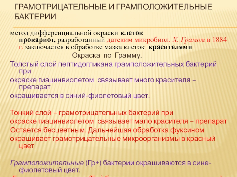 метод дифференциальной окраски клеток прокариот, разработанный датским микробиол. X. Грамом в