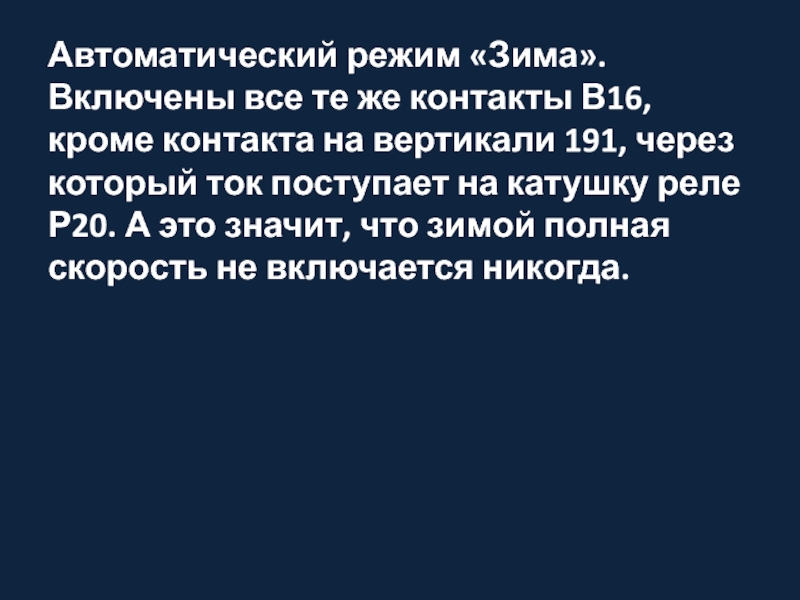 Слайд 13Автоматический режим «Зима». Включены все те же контакты В16, кроме