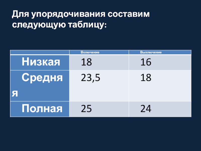 Слайд 12Для упорядочивания составим следующую таблицу: