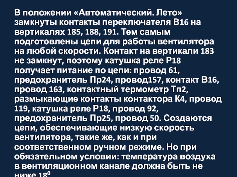 Слайд 3В положении «Автоматический. Лето» замкнуты контакты переключателя В16 на вертикалях