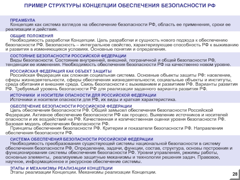 ПРИМЕР СТРУКТУРЫ КОНЦЕПЦИИ ОБЕСПЕЧЕНИЯ БЕЗОПАСНОСТИ РФ