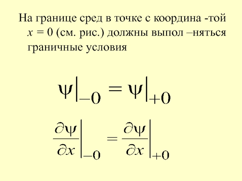 На границе сред в точке с координа -той x = 0 (см. рис.) должны выпол –няться граничные