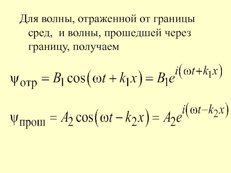 Для волны, отраженной от границы сред, и волны, прошедшей через границу, получаем