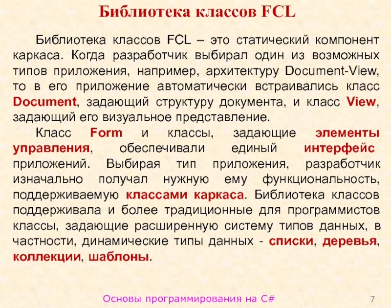 Библиотека классов FCL – это
