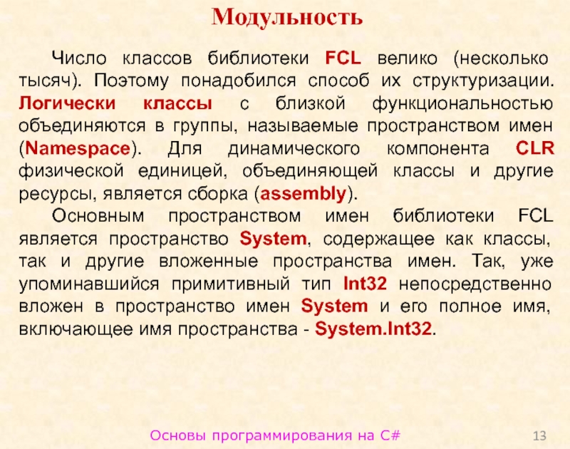 Слайд 13Основы программирования на C#