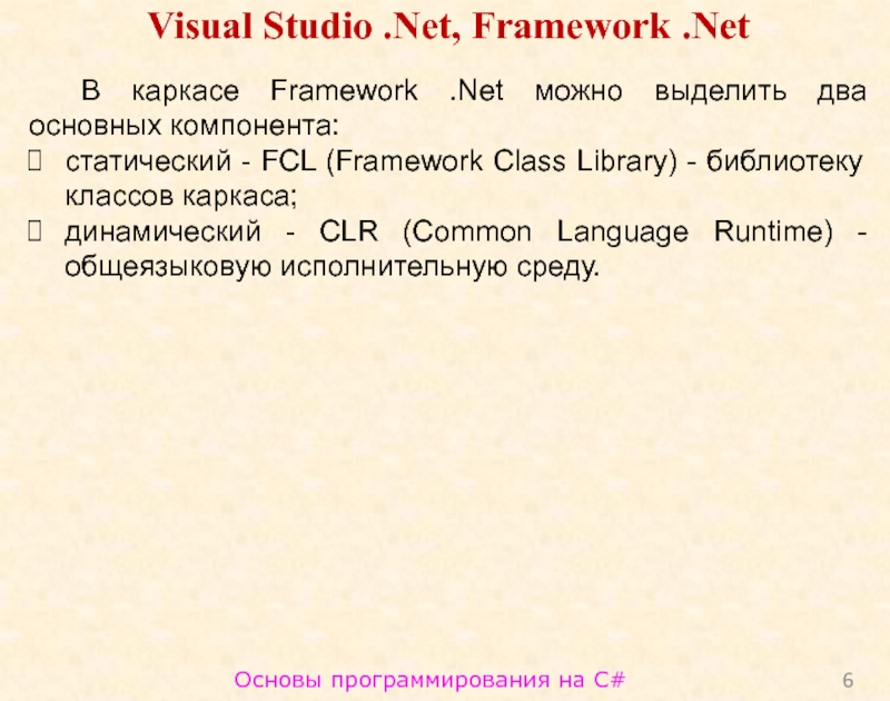 Слайд 6Основы программирования на C#