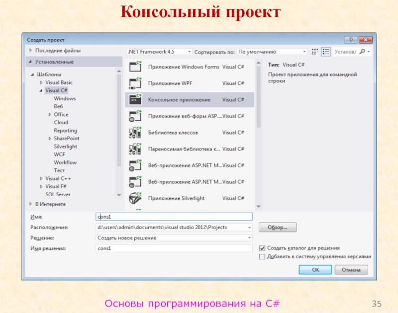 Слайд 35Основы программирования на C#