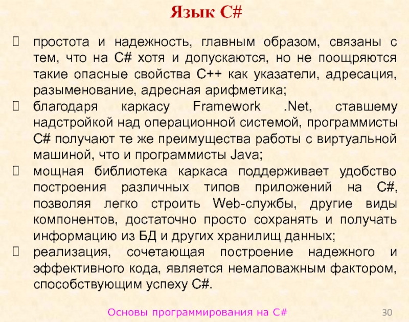 Слайд 30Основы программирования на C#