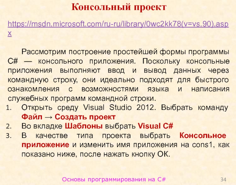 Слайд 34Основы программирования на C#
