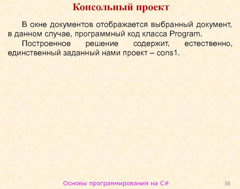 Слайд 38Основы программирования на C#