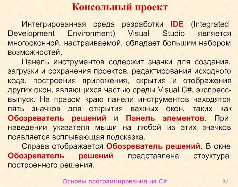Слайд 37Основы программирования на C#