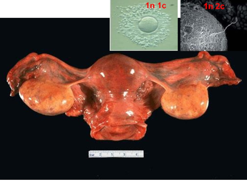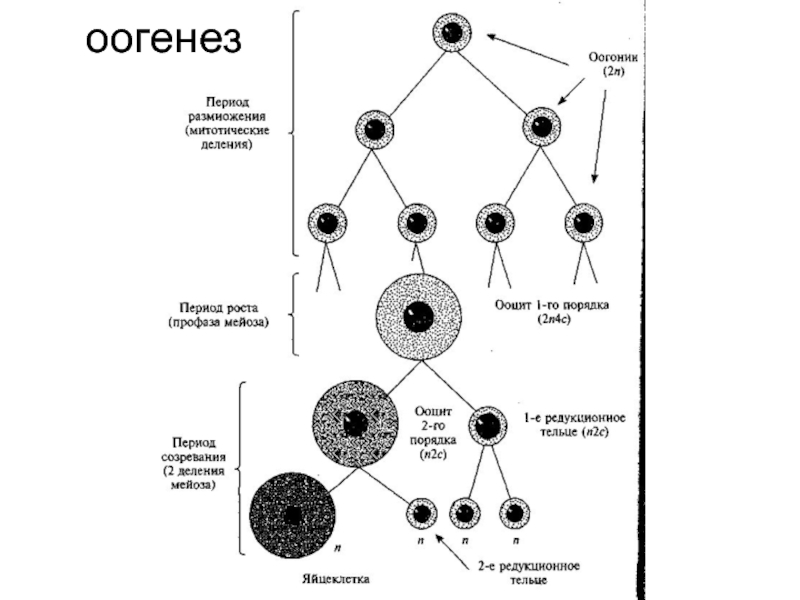 Слайд 43Оогенез у млекопитающих происходит в яичниках и тоже начинается в